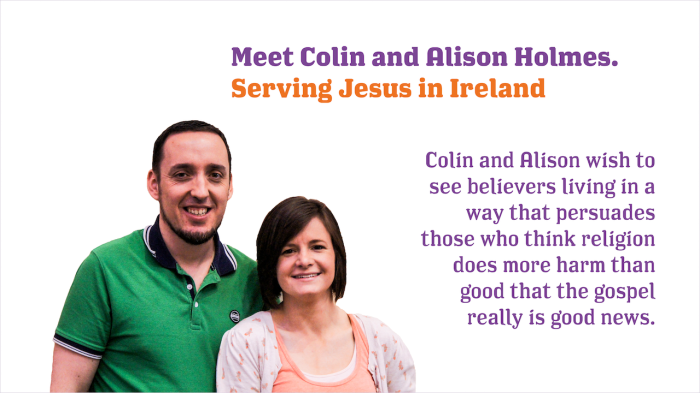 Colin and Alison Holmes are Church Planters in Ferrybank, Waterford, Republic of Ireland.